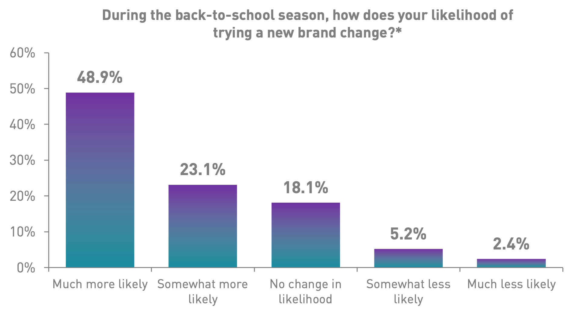 The most important fall finding for CPG brands: 72% of parents and caregivers say they are more likely to try a new brand during back-to-school shopping, with nearly half describing themselves as much more likely. The trial opportunity spans the full lunchbox and dinner routine — from grab-and-go snacks to quick & easy weeknight meals.