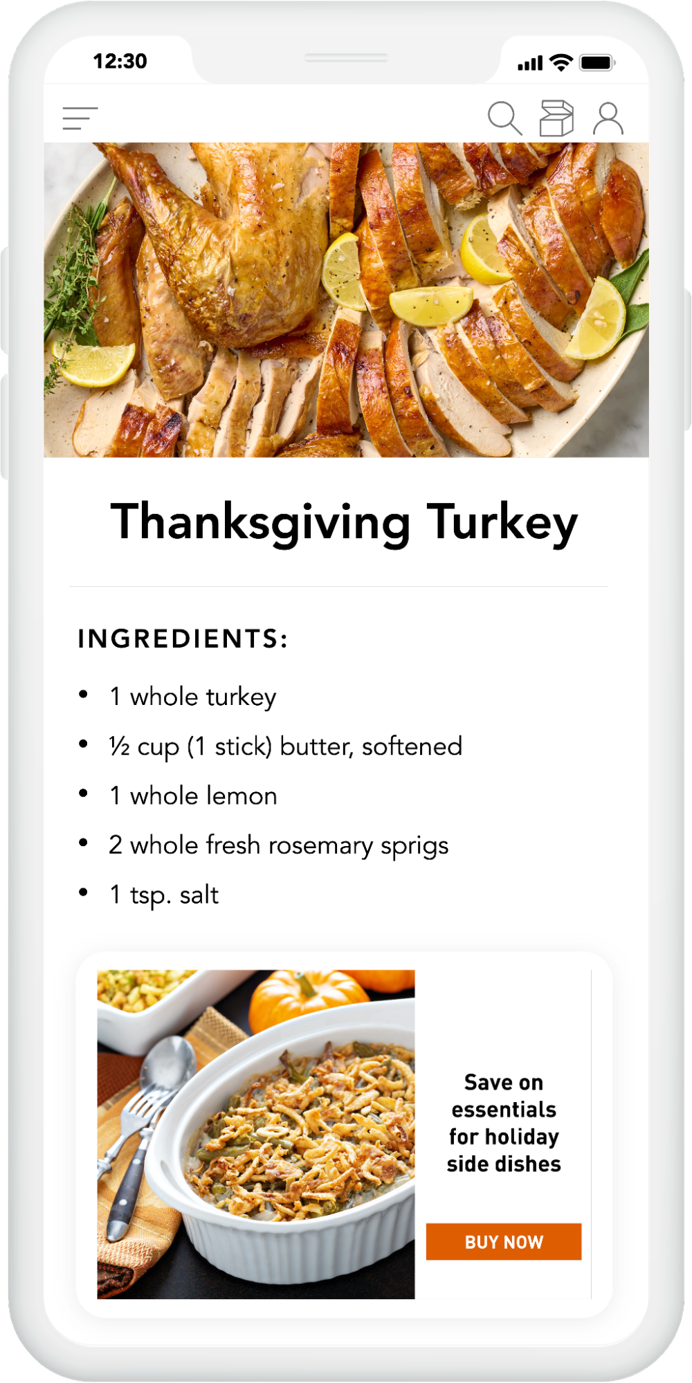 To achieve this goal, Good Apple partnered with Chicory, the leading contextual advertising platform for CPG and grocery, to launch a campaign that reached shoppers in the right mindset: while actively planning meals and building grocery lists. Instead of relying on traditional display tactics, the campaign aligned contextual media with seasonal recipe content, allowing the retailer to show up where food decisions were naturally occurring.